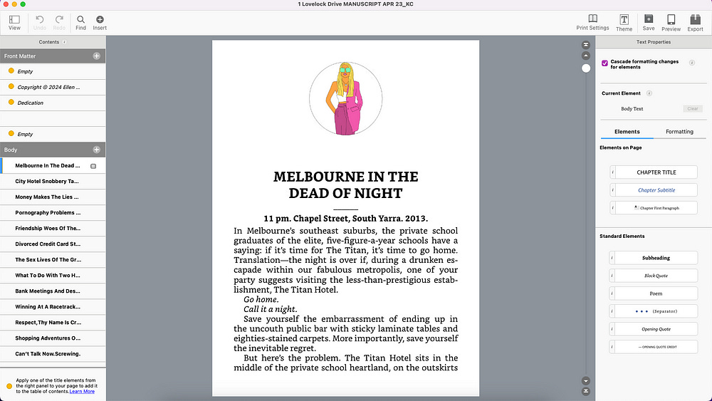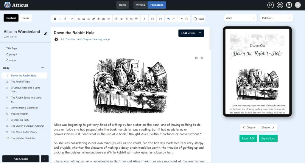 However, after completing the drafting process, I cared more about programs that allowed maximum editing capability and an exporting system fit for Amazon (which turned out to be a PDF-formatted document).